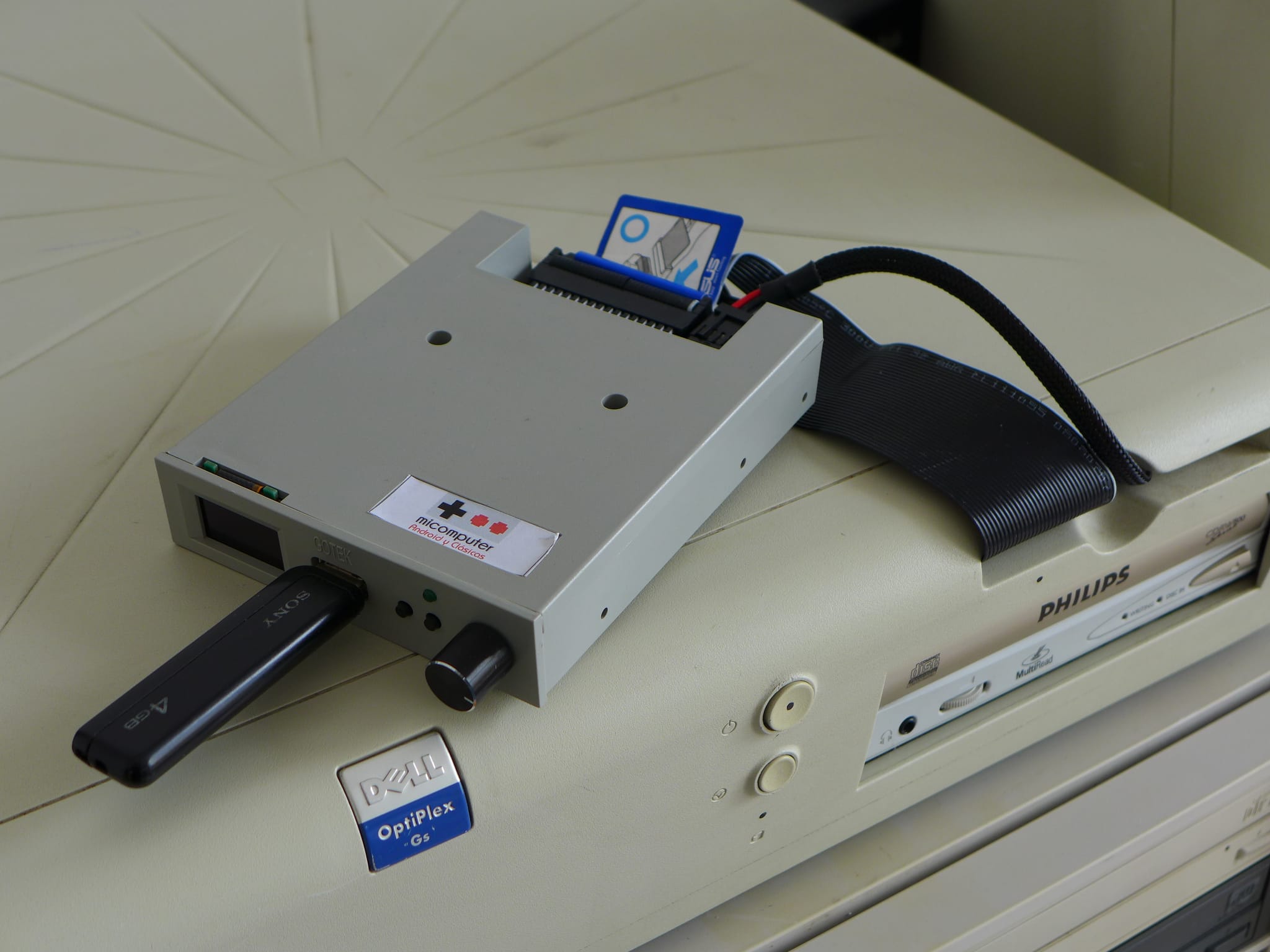 Because of the Dell OptiPlex form-factor (bezeless FDD) the Gotek can not stay inside when the case is closed: